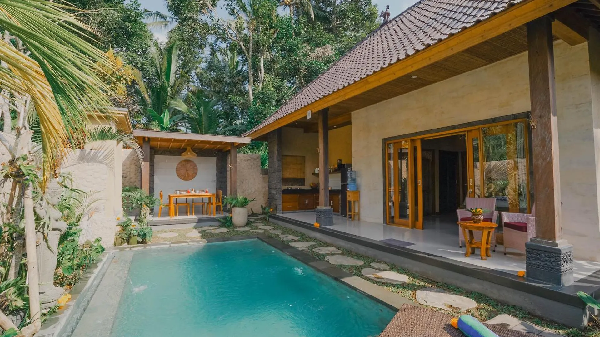 Tengah Villa Ubud ligt op 3 km afstand van het Bibliotheek en Educatiecentrum Pondok Pekak en nodigt gasten uit om te ontspannen op een terras. De villa biedt uitzicht op het zwembad en een privézwembad, perfect voor gasten om te ontspannen, en ligt in de wijk Kedewatan van Ubud.